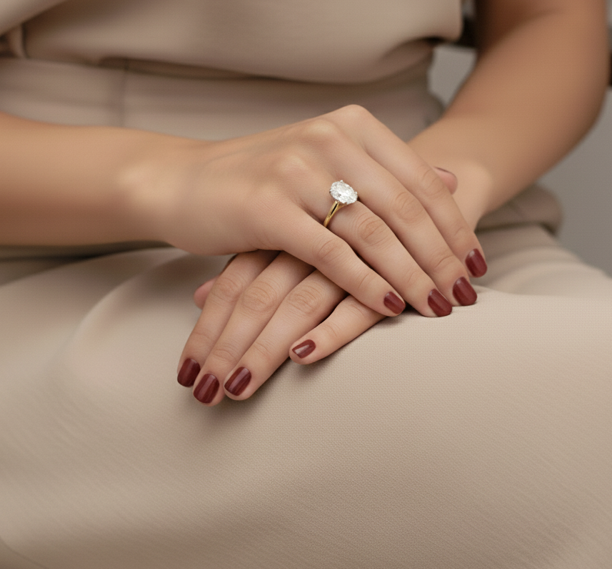 18ct Gold Lab Diamond Engagement Ring Simple in design but Sophisticated. This Diamond Engagement Ring will never loose it’s beauty. With its exquisite design and sheer brilliance, this is the Ring for you. This stunning Diamond Ring featuring dazzling Oval Shape stones with Plain Shank. Fusing a vintage-inspired style with modern glamour for timeless style. This gorgeous Diamond Engagement Ring features a beautiful Brilliant Cut Diamond in the centre. This Brilliant Cut Lab Diamond produce with HPHT Process to achieve higher Clarity and Colour. An elegant Diamond Ring with a simple yet timeless design. This beautiful piece has been crafted in 18ct Two Tone Gold.