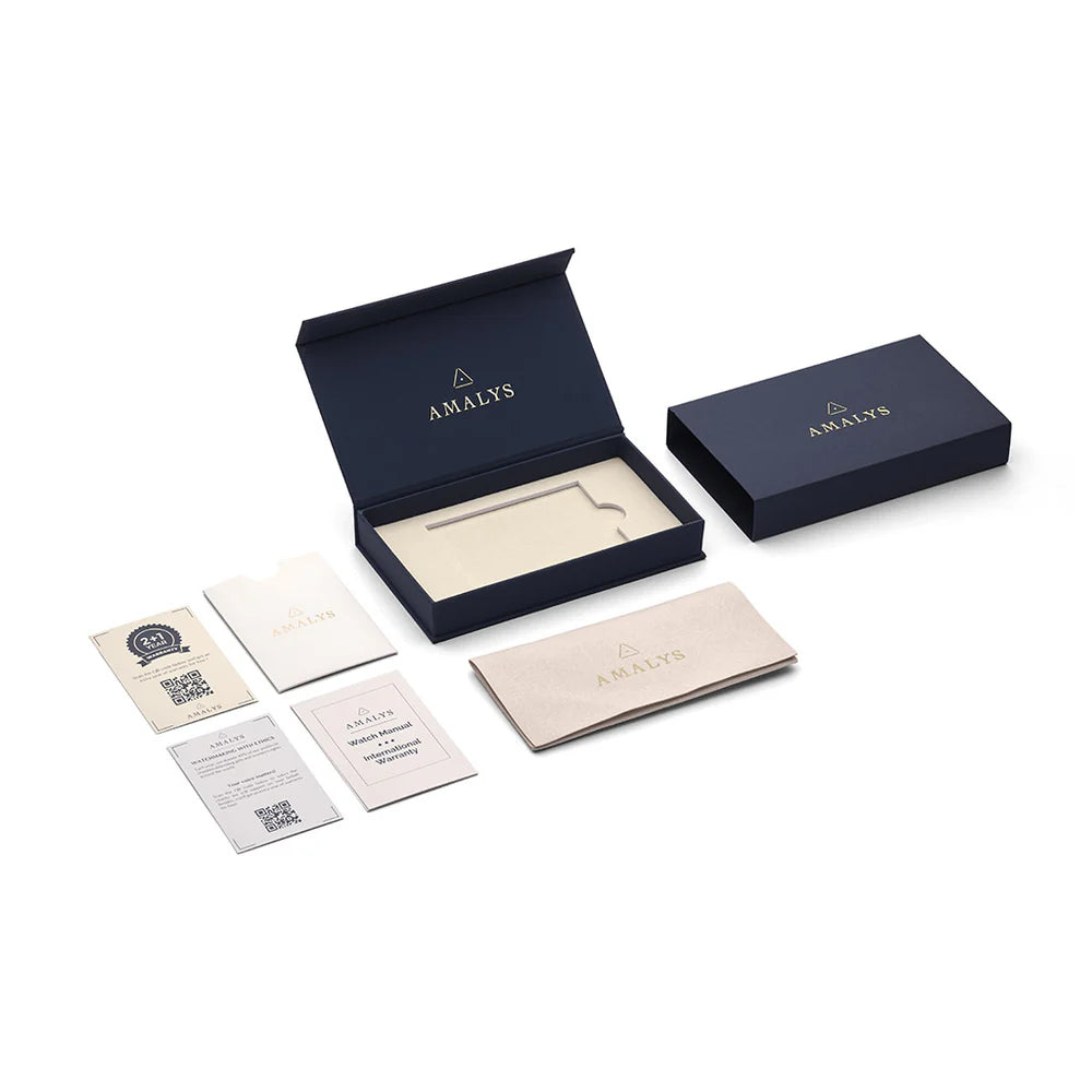 Amalys stainless steel gold plated round green faced watch with classic link bracelet design, fitted with seiko quartz movement