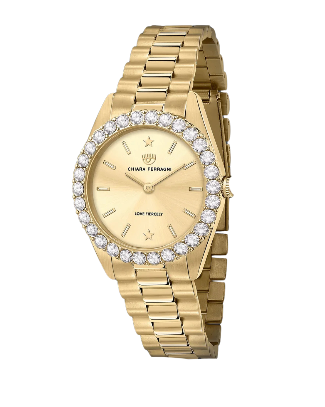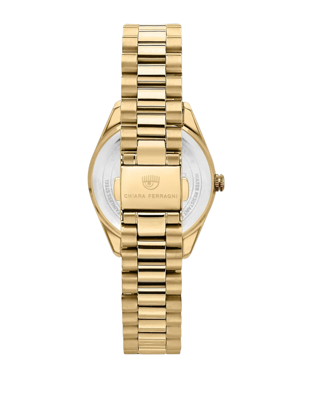 Elevate your timepiece collection with this sophisticated Chiara Ferragni stainless steel watch. The luxurious gold plating creates a refined aesthetic, while the precision-set cubic zirconia embellishments on the bezel add a touch of understated glamour. Combining impeccable craftsmanship with contemporary Italian design sensibility, this ladies' watch offers both precision timekeeping and elegant styling for any occasion.