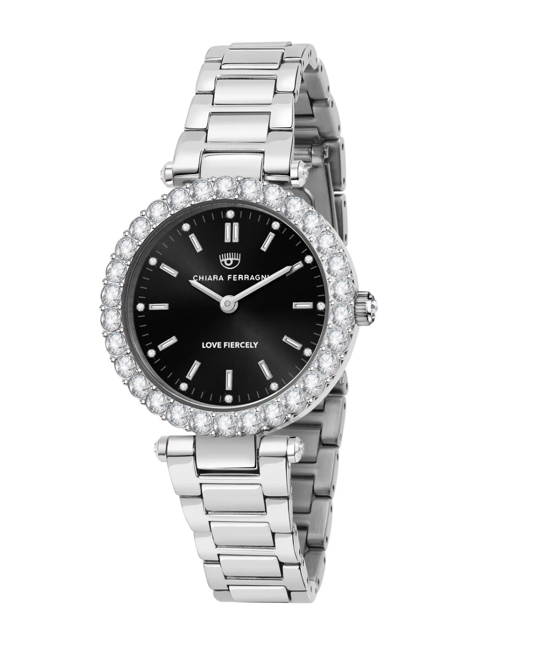 Precision-crafted stainless steel timepiece from the Chiara Ferragni collection featuring an elegant black dial complemented by a dazzling cubic zirconia bezel. This sophisticated ladies watch combines durability with luxury, offering both reliable timekeeping and a refined aesthetic suitable for everyday wear or special occasions.