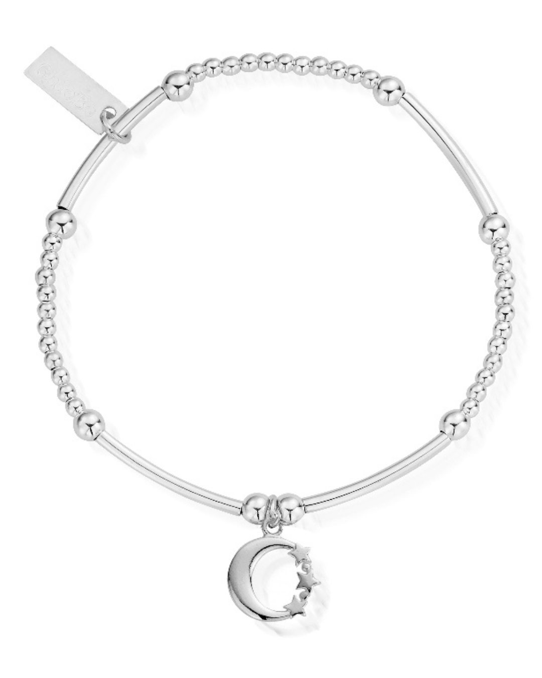 Expertly crafted, this ChloBo bracelet boasts a sterling silver design adorned with mini moons and stars. Combining elegant simplicity and celestial charm, this bracelet is a delightful addition to any outfit. Elevate your style with this dainty yet striking piece.