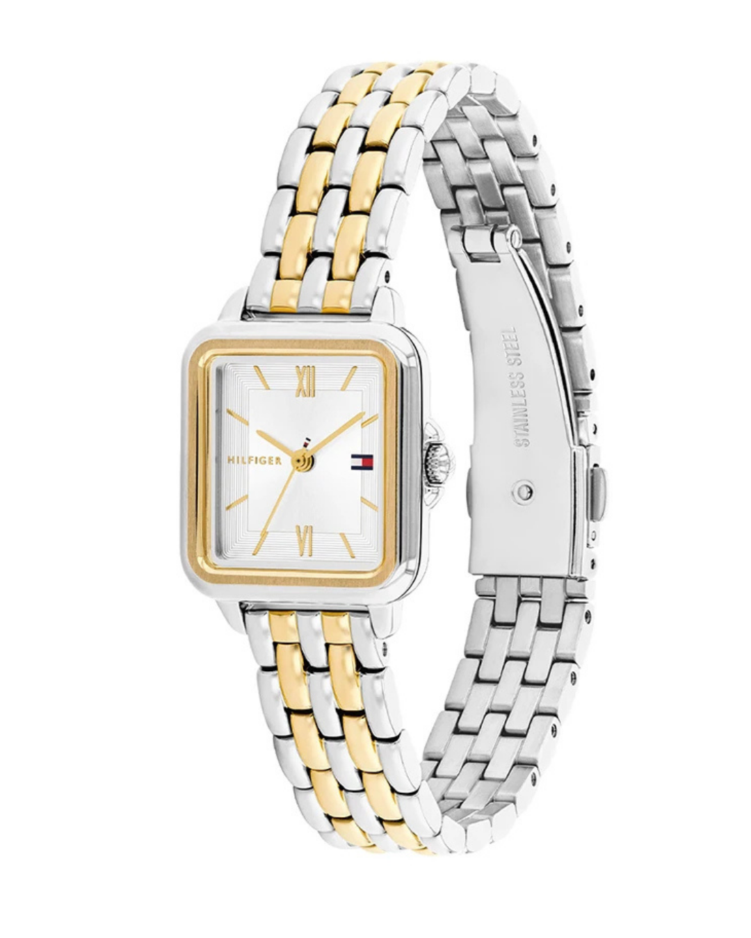 This Ladies Tommy Hilfiger 1782861 watch features a unique design with a square face and two distinct tones. The stylish watch is perfect for adding a sophisticated touch to any outfit and is perfect for any occasion. With its accurate timekeeping and durable construction, this watch is a must-have accessory for any fashion-forward individual.