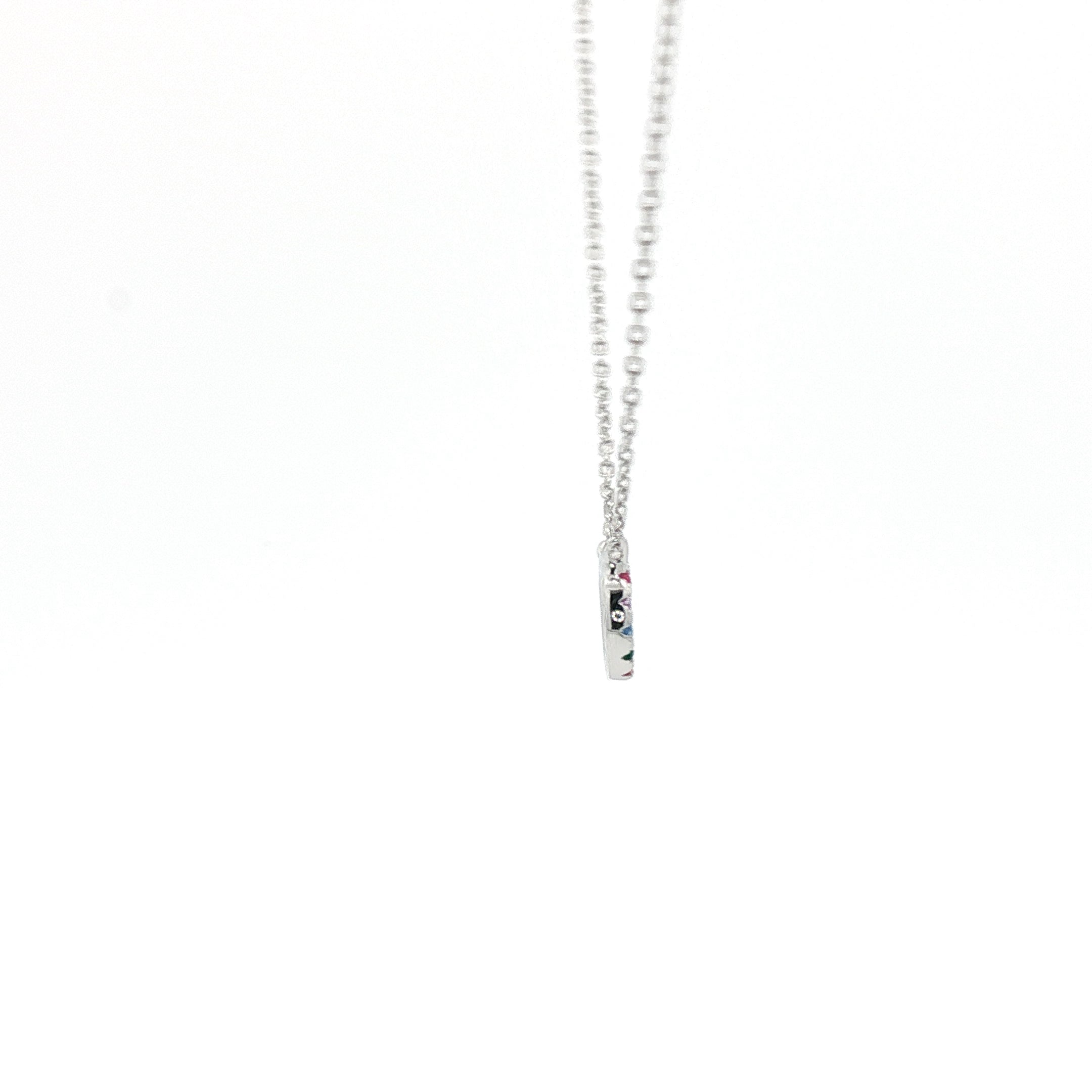 Elevate your style with this chic Sterling Silver chain necklace. Its delicate silver chain gracefully suspends a vibrant, multi gemstone adorned circular pendant. A captivating piece that adds a pop of color and modern flair to any ensemble. Perfect for everyday wear or special occasions.